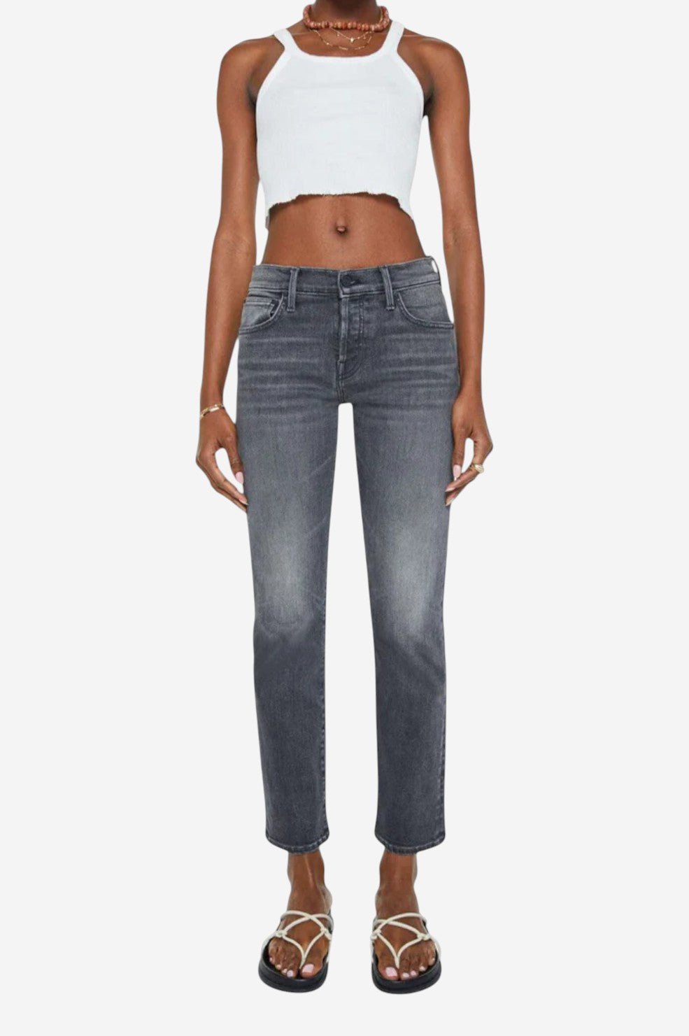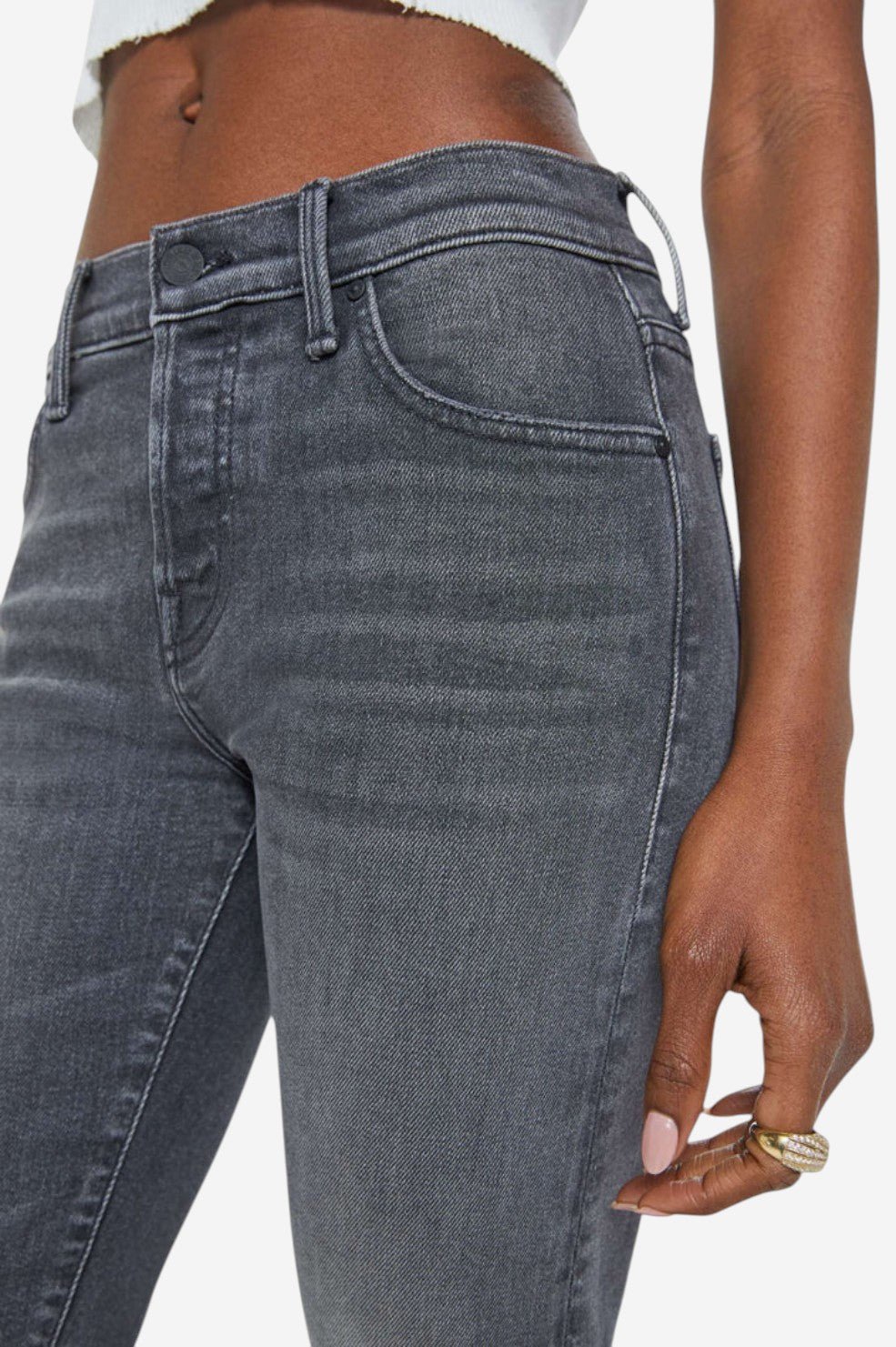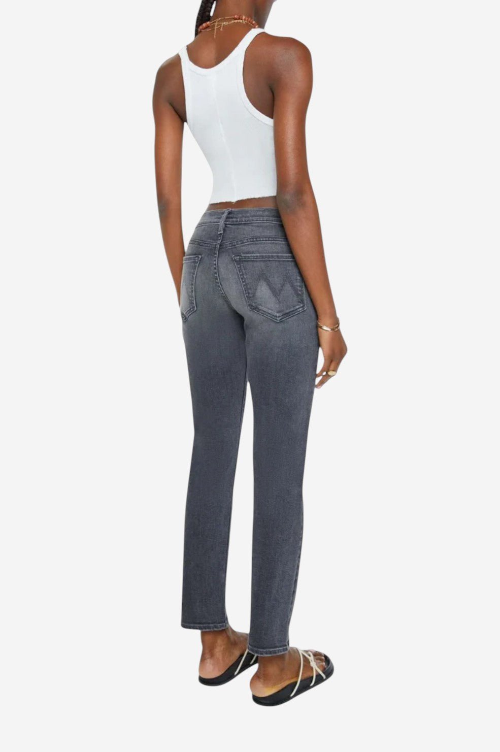 Laid-back with a borrowed-from-him edge. “The Mid Rise Hiker Hover” is a slim straight-leg jean inspired by MOTHER’s men’s line, updated with a feminine fit. It features a mid rise, low-set back pockets, and a clean hem for a streamlined look. Cut from soft, stretch-infused denim in Call It A Night—a faded black wash with subtle whiskering and knee wear—this pair walks the line between cool and classic.