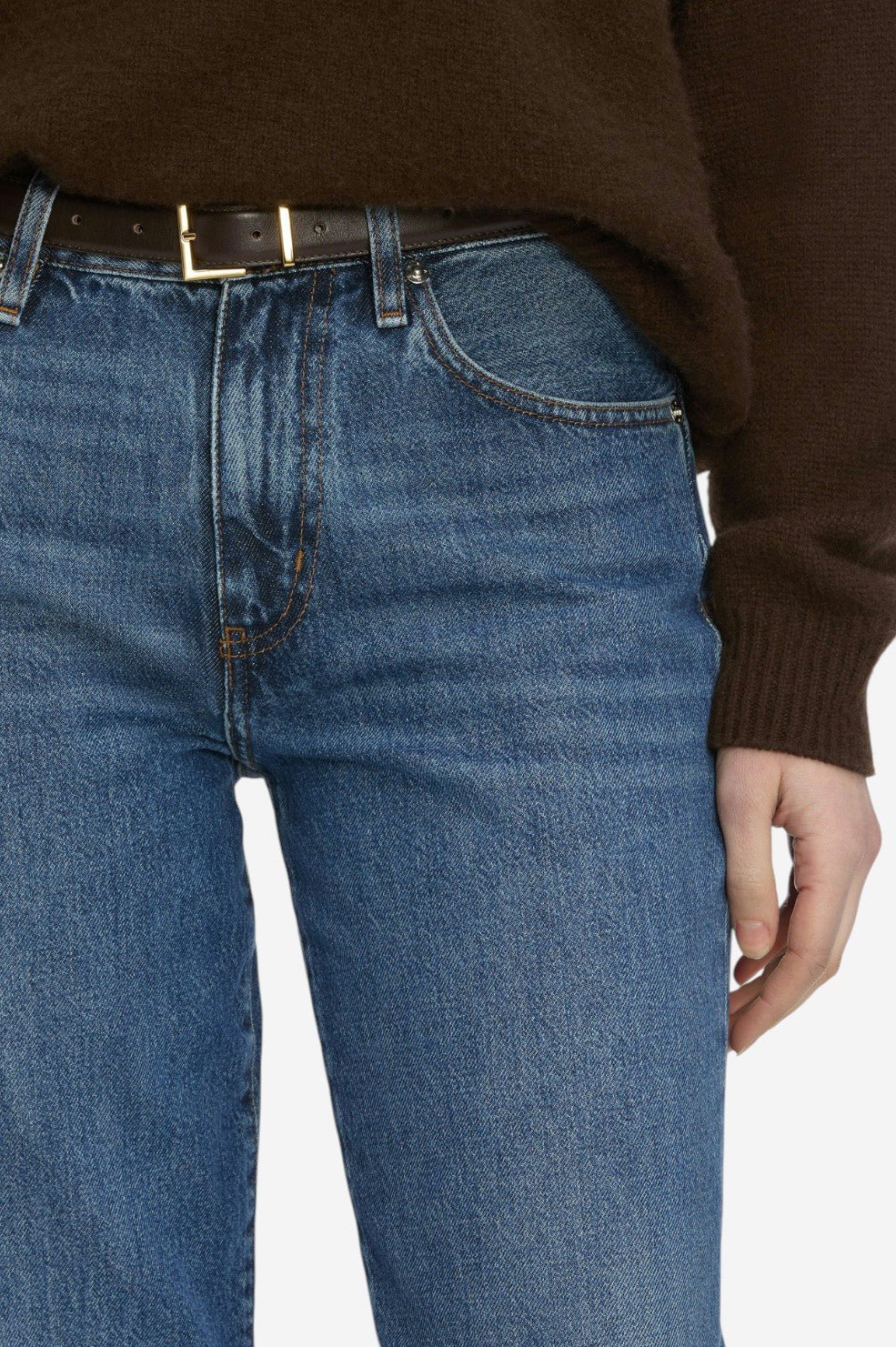 The “Hang” from FRAME is a refined take on the relaxed jean—crafted to drape effortlessly from a mid-rise waist with a straight leg that offers just the right amount of room through the hip and thigh. The result? A fluid fit that’s never slouchy, always polished. Finished in rigid luxury denim, it’s the perfect balance of laid-back ease and tailored sophistication.